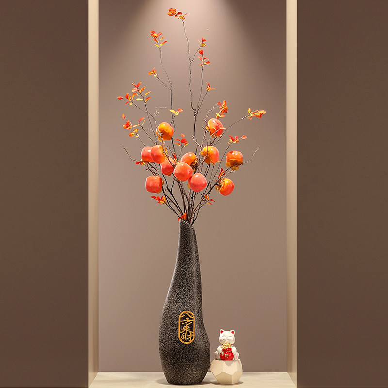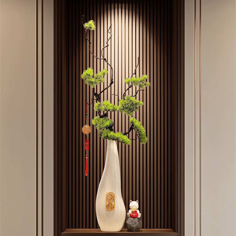 石来运转陶瓷招财猫花瓶摆件高级感客厅迎客松乔迁开业壁龛装饰品