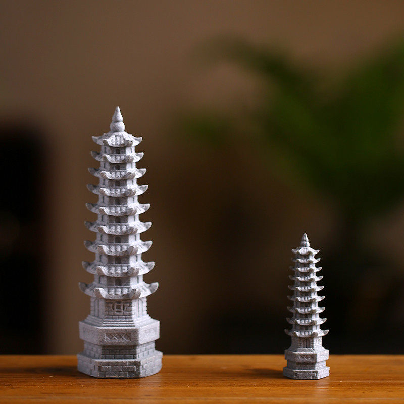 中式九层文昌塔摆件青砂石风水宝塔鱼缸庭院禅意造景桌面书桌装饰