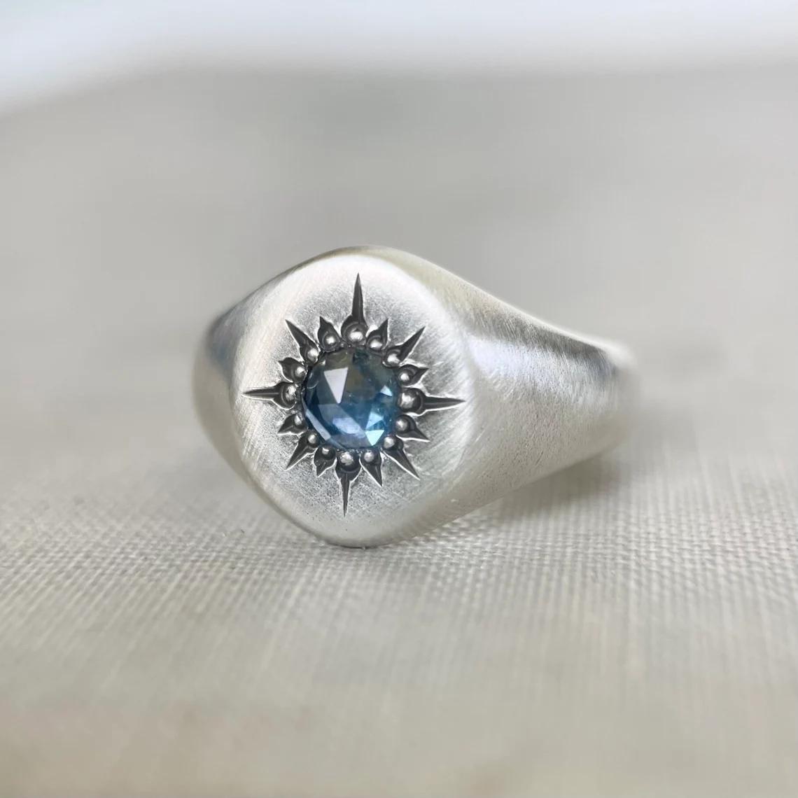 纯银戒指镶嵌宝石轻奢高级感星星雕刻原创设计椭圆形小众定制颜色