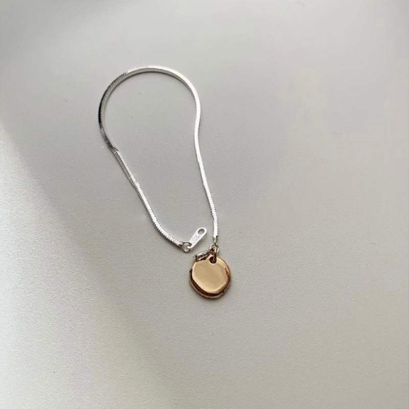 简约拼色圆牌手链女ins文艺小众设计个性手环S925银嘻哈学生手饰