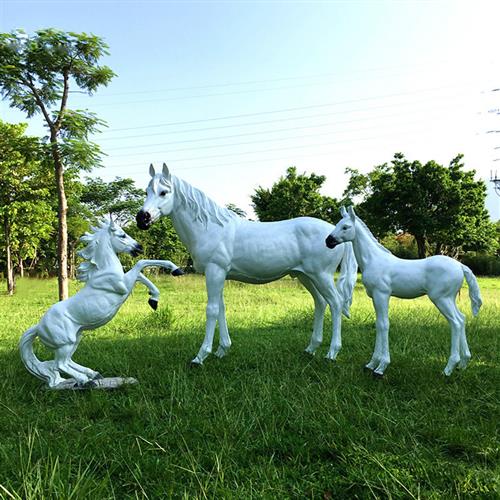 大型户外仿真动物白马玻璃钢雕塑模型摆件小区公园林景观落地装饰