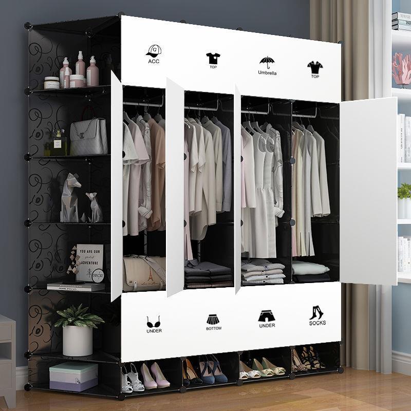 简易衣柜实木塑料收纳架推拉门简约柜储物柜布衣柜儿童衣柜收纳柜