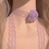 原创设计超仙气紫色毛线花朵蕾丝花边长款飘带项圈颈带choker项链