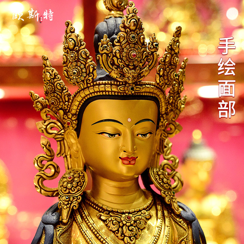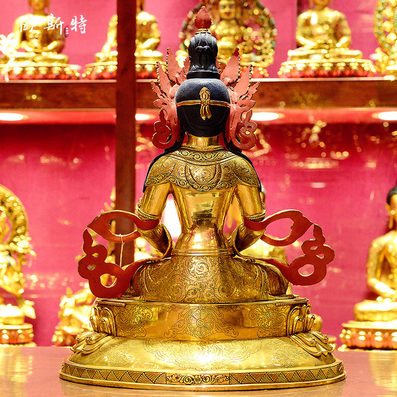 尼泊尔进口《长寿佛》释迦族手工制作《常寿佛》桌面铜像摆件