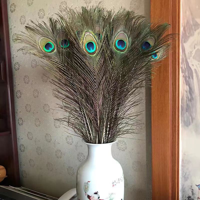 天然真孔雀羽毛翎尾大眼睛客厅摆件花瓶插花装饰品DIY配件孔雀毛