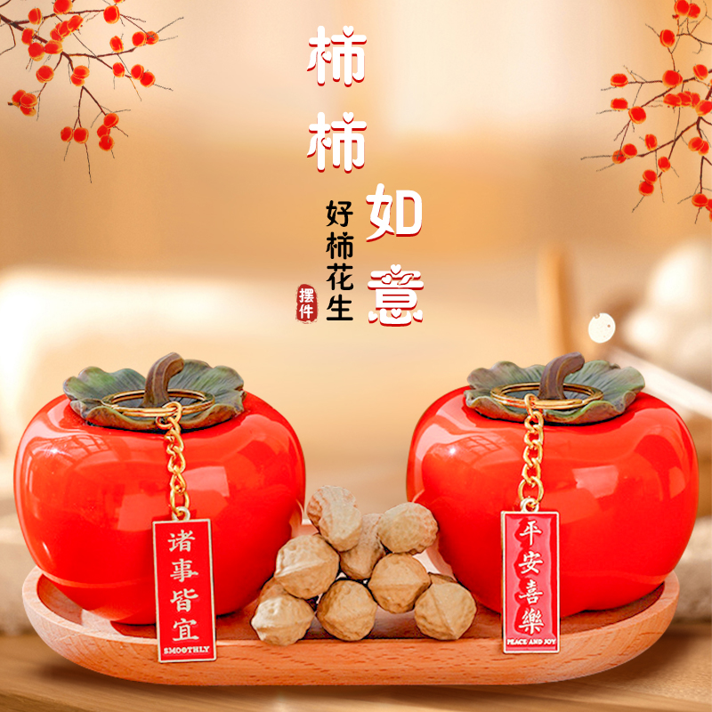 柿柿如意新中式装饰品乔迁之喜新居礼品摆件客厅高档大气实用礼物
