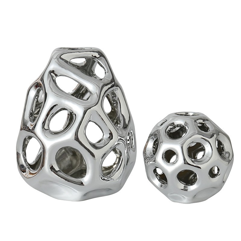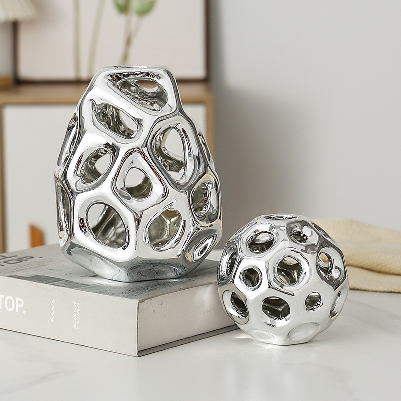 现代抽象设计花瓶陶瓷品金星球花瓶客厅样板房家居摆件雅致定制