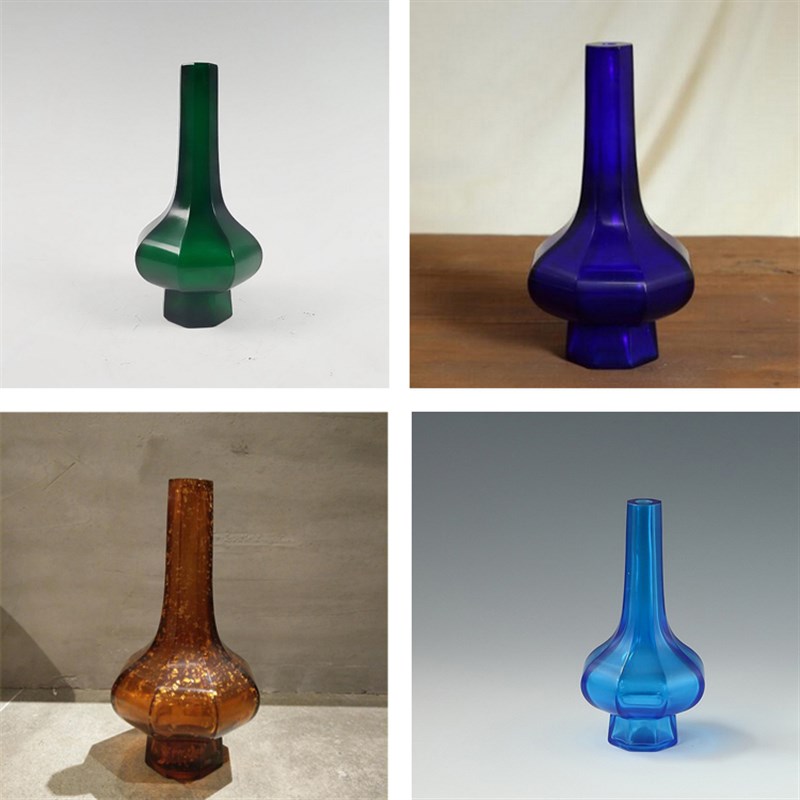新中式禅意境八面立体琉璃花器瓶茶室桌面家居客厅装饰工艺品摆件