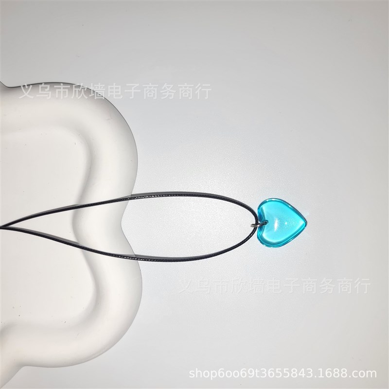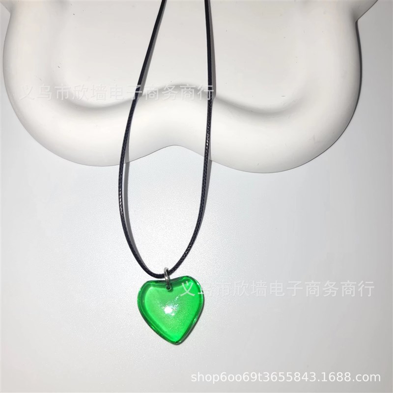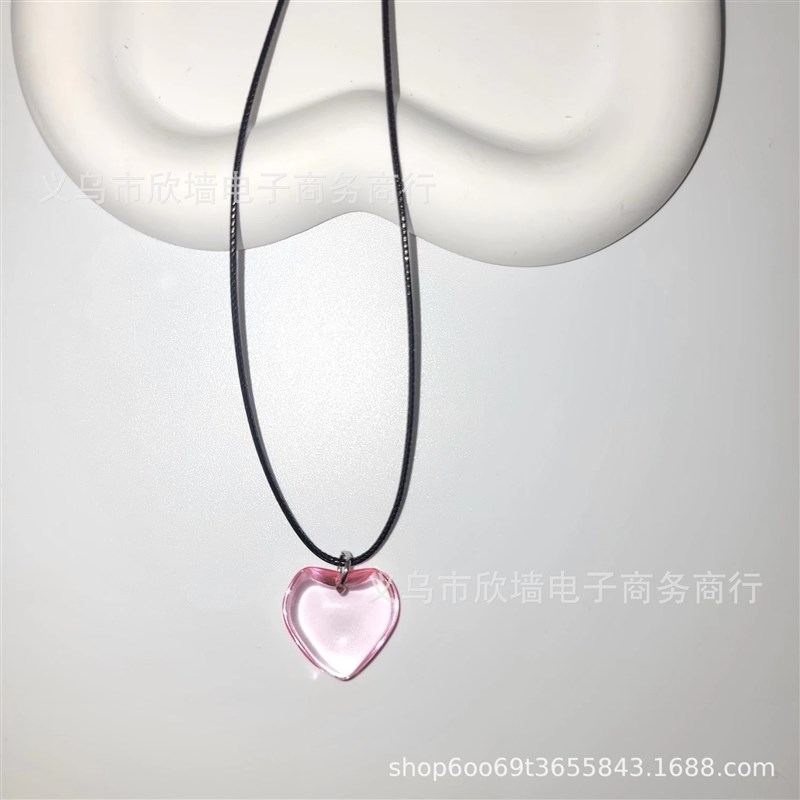 Translucent Peach Heart Pendant Wax Line Necklace for Women