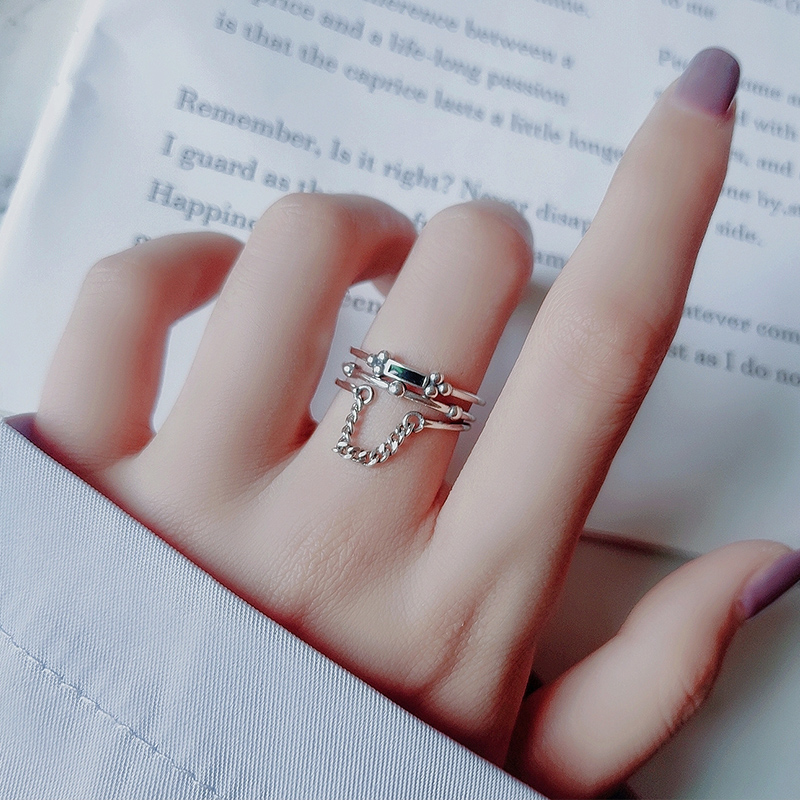 S925纯银三层复古食指戒指女链条霸气宽版指环2022新款潮小众时尚