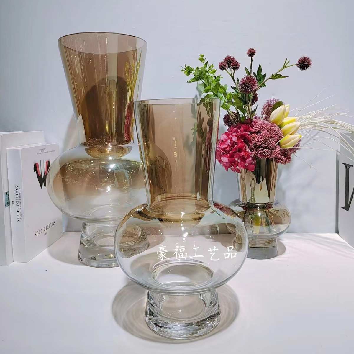 现代轻奢高档水培插花玻璃花瓶台面装饰摆件