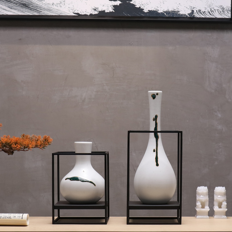 新中式现代创意铁艺陶瓷花瓶花器摆件样板间酒店客厅电视柜装饰品