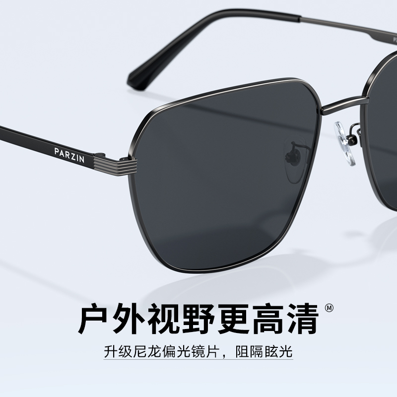 帕森偏光太阳镜男金属框商务时尚开车户外防晒防紫外线墨镜PZ8267