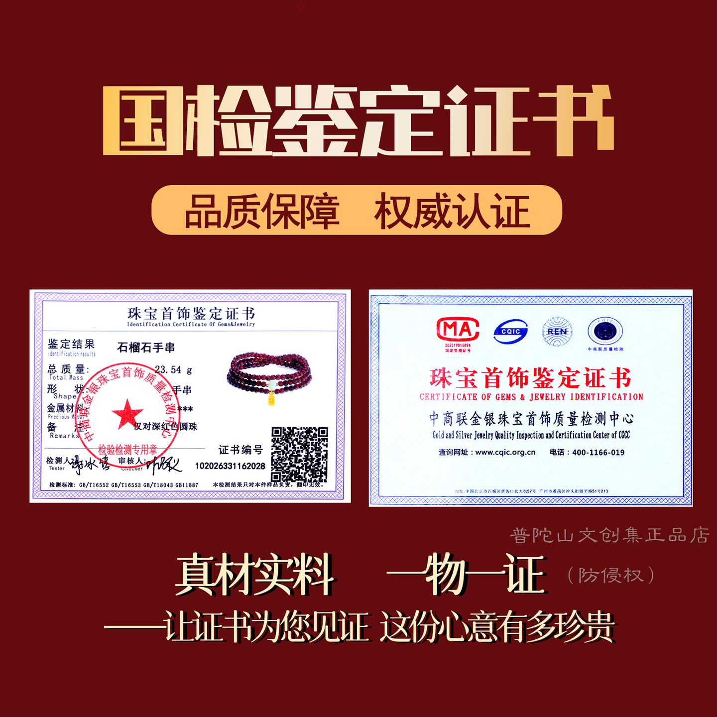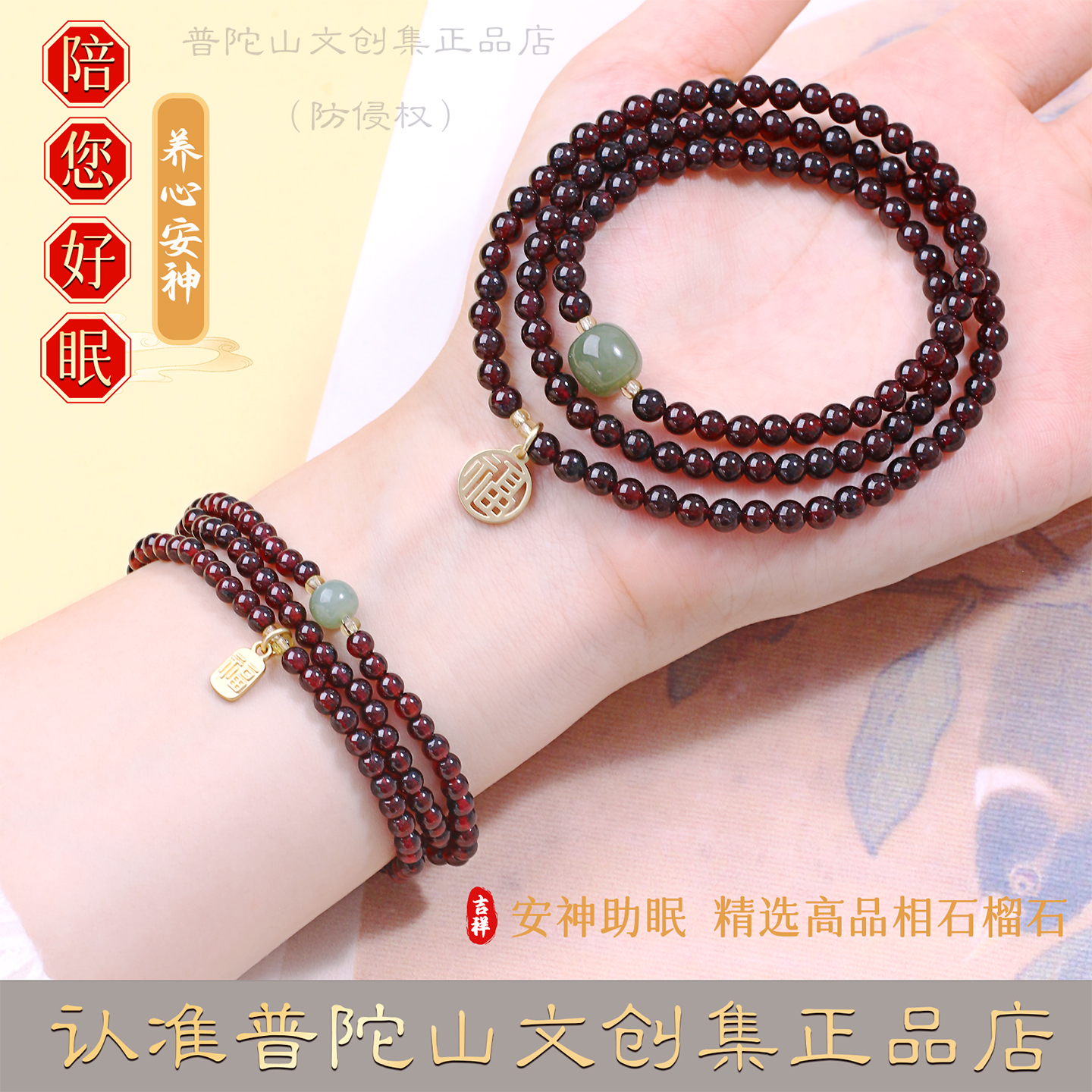普陀山文创集天然石榴石手串三圈和田玉手链小众轻奢手饰简约百搭