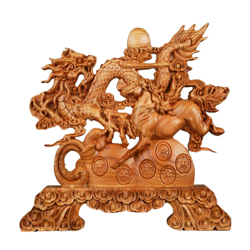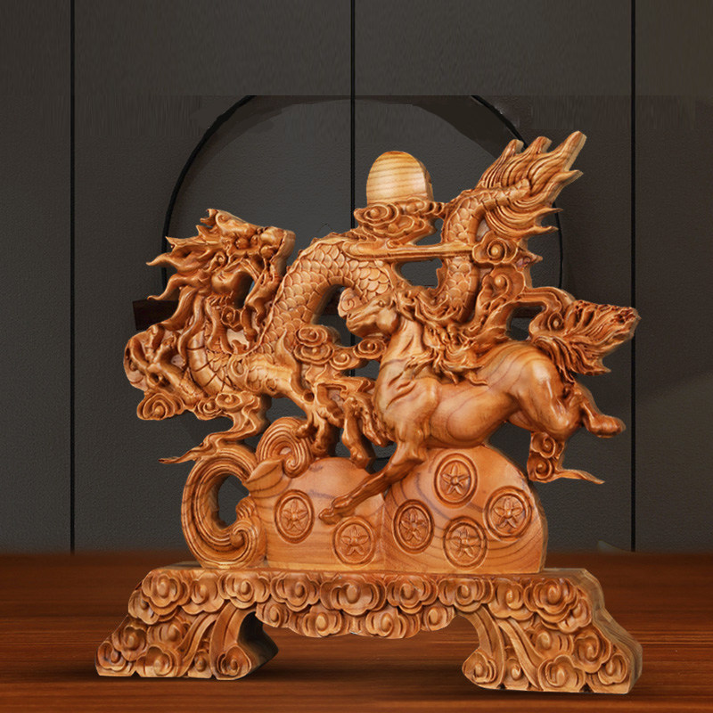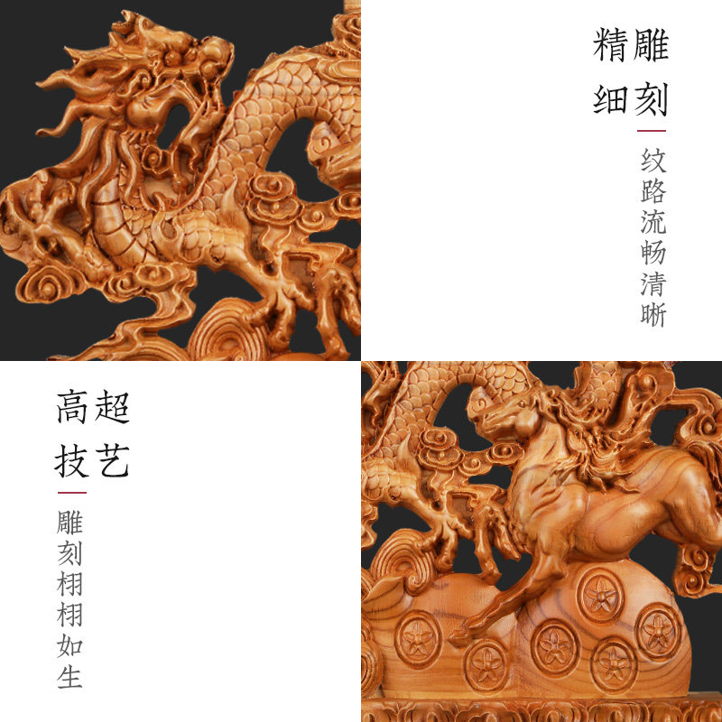 桃木龙马精神摆件公司店铺开业礼品木雕工艺品