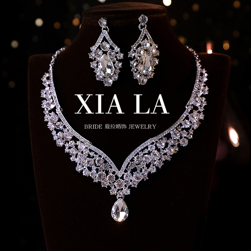 夏拉新款奢华复古晚礼服闪钻项链新娘婚纱颈链耳饰套装气质配饰品