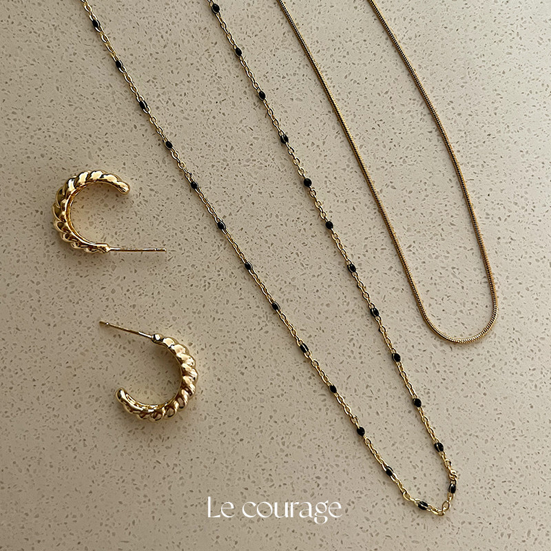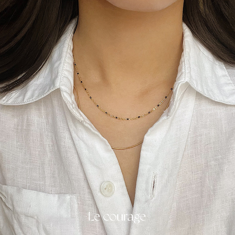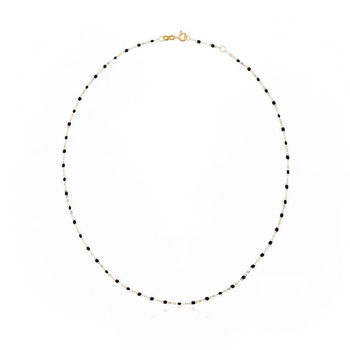 Le courage 法式复古高级感18K金黑色隔珠十字链项链锁骨链