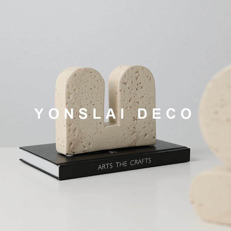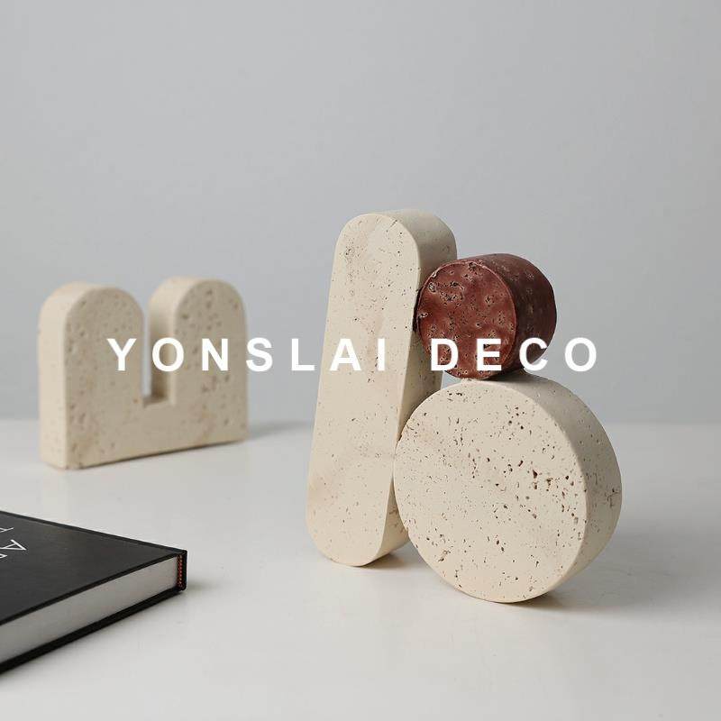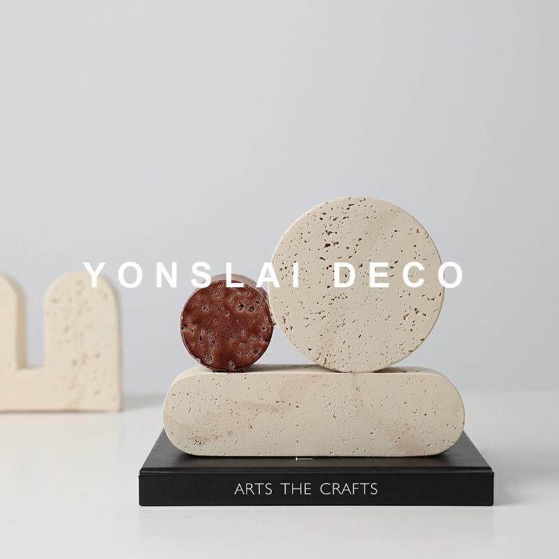 Wabi-Sabi风格彷石灰华桌面装饰客厅入口书柜创意几何书柜简单软