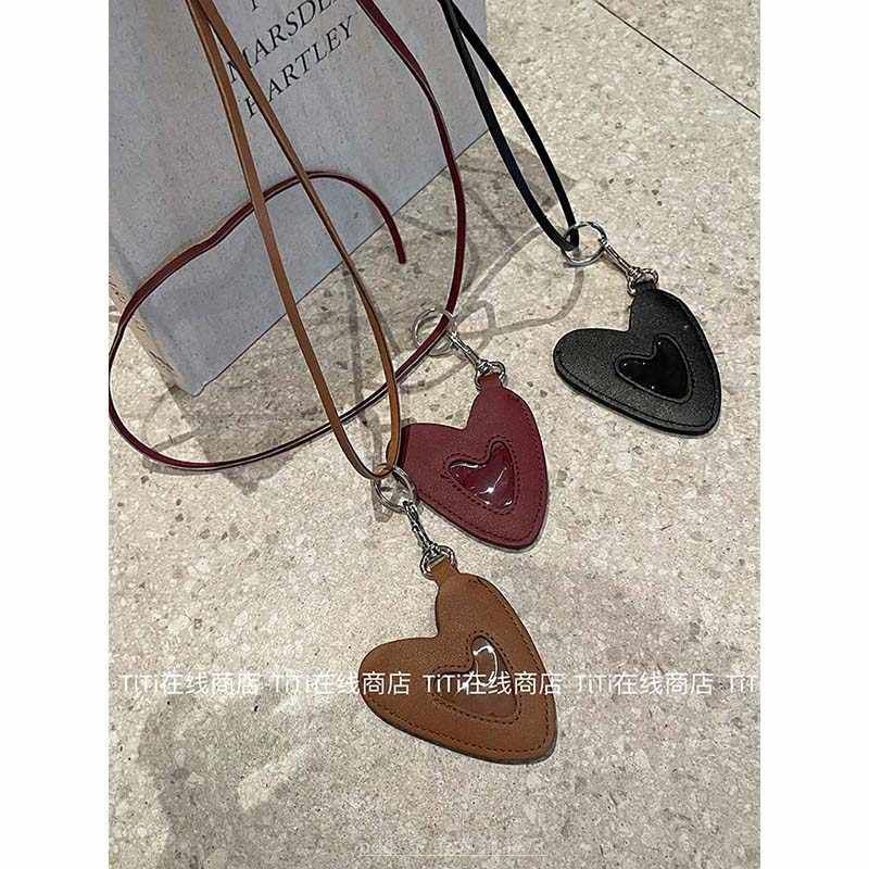 4款~皮质爱心挂绳小包项链韩系秋冬挂脖毛衣链零钱包挂件配饰商店