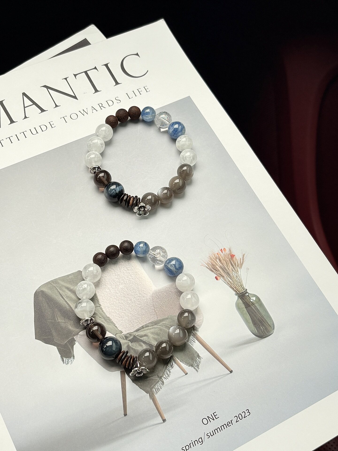 【寒星】原创天然蓝虎眼雪花幽灵降真香银月光复古蓝色系水晶设计