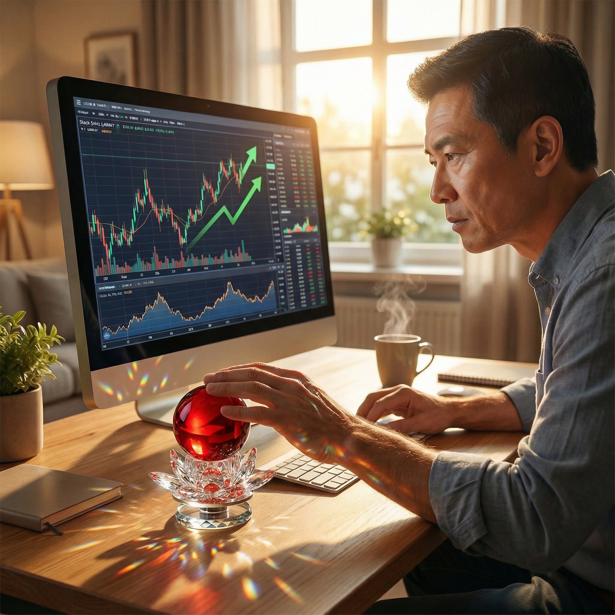 红色水晶球桌面摆件莲花家居装饰品乔迁送礼客厅玄关摆件电视柜