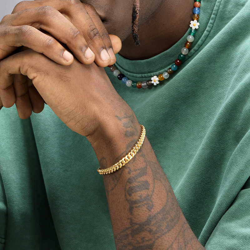 GRGR 18K金色细古巴链手链男嘻哈欧美流行钛钢cuban link手链女