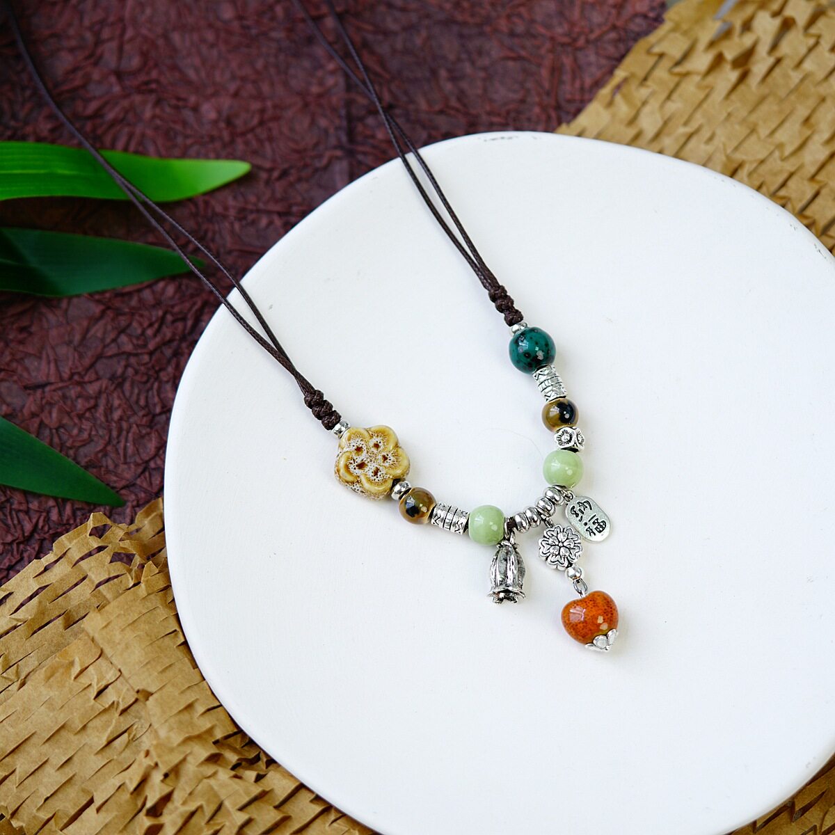 平安是福国潮复古景德镇陶瓷项链女长命锁锁骨链文艺吊坠锁骨链