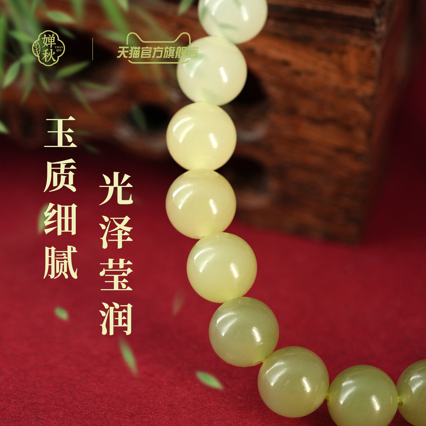 新中式国风手链天然和田玉晴水手串女款碧玉渐变水绿青白玉礼物