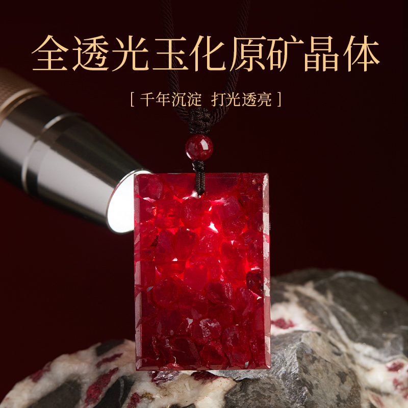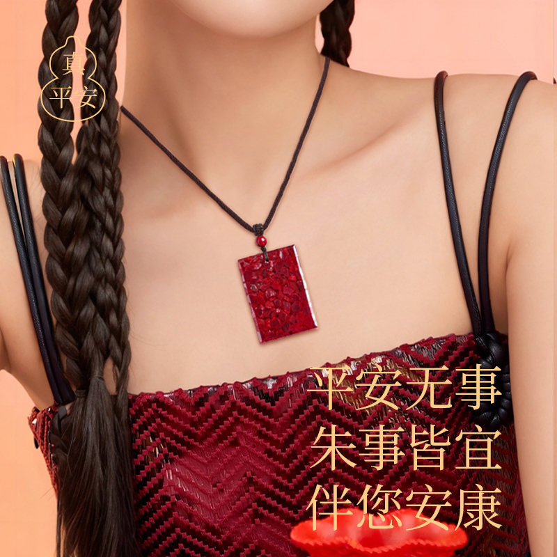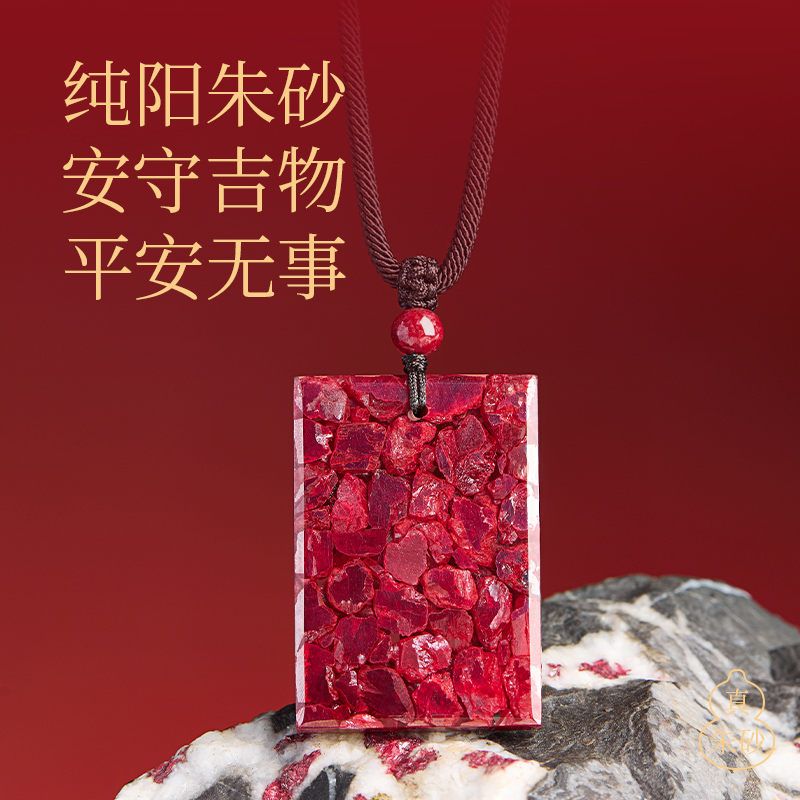 官方旗舰店正品原矿朱砂无事牌吊坠挂件女全透光玉化晶体砂项链男