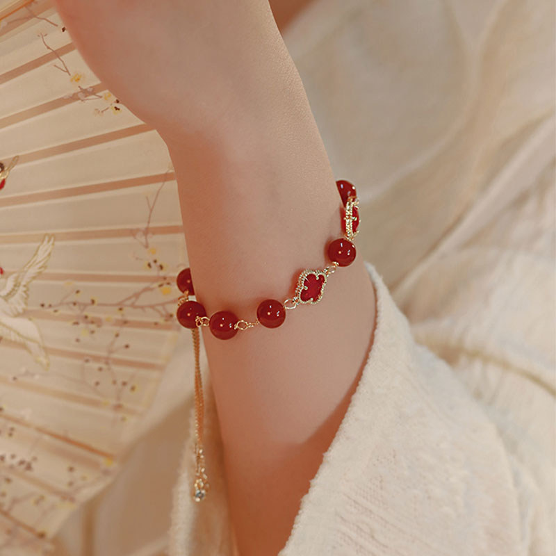 新年本命年仿红色玛瑙四叶草手链女款精致百搭手串轻奢高级感手饰