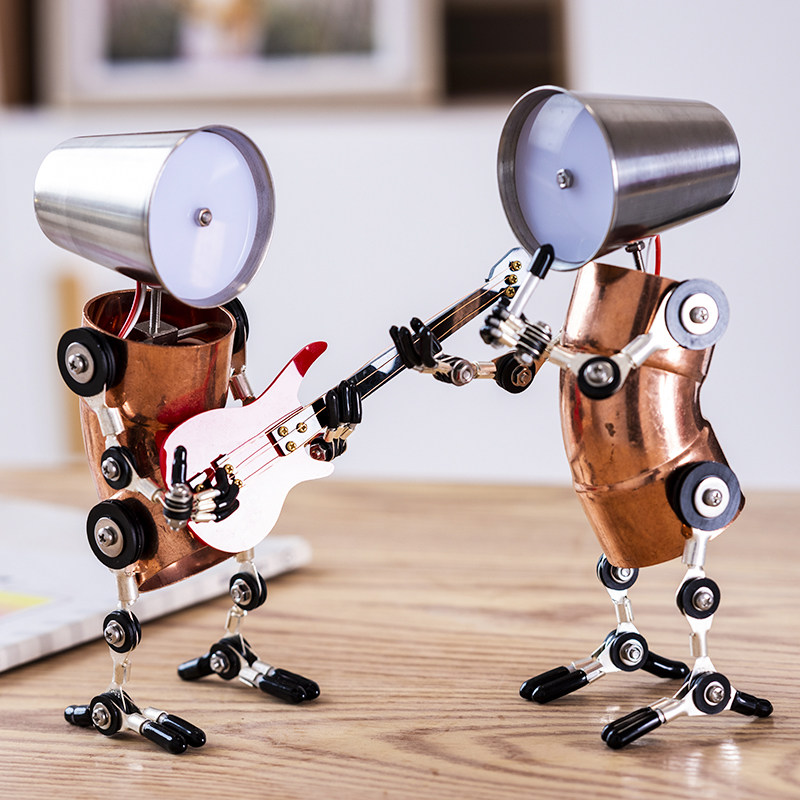 工业风机器人摆件桌面小夜灯金属蒸汽朋克纯手工吉他贝斯男生礼物