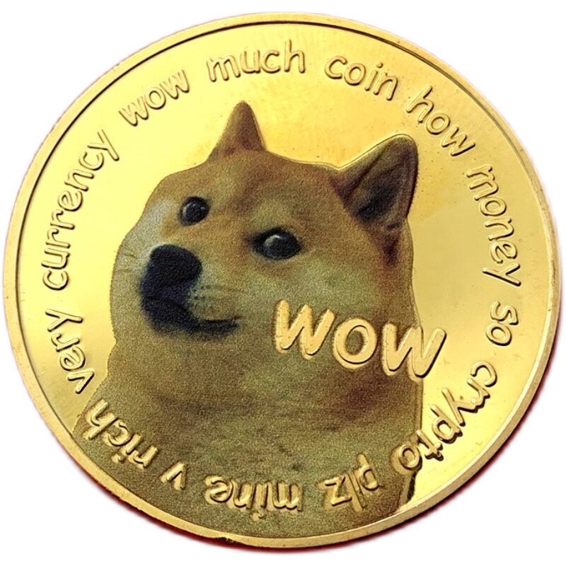 现货 美国实物狗狗币彩绘镀金纪念币 摆件硬币dogcoin金币纪念币