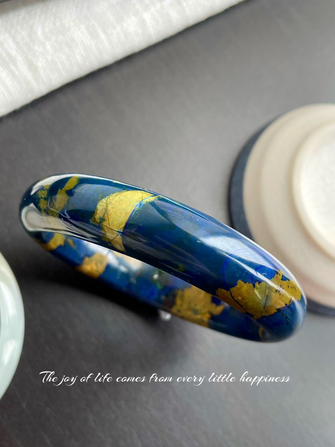 典藏天然无优化硅化孔雀石稀缺钴蓝色系宽版手镯56圈实拍女款现货