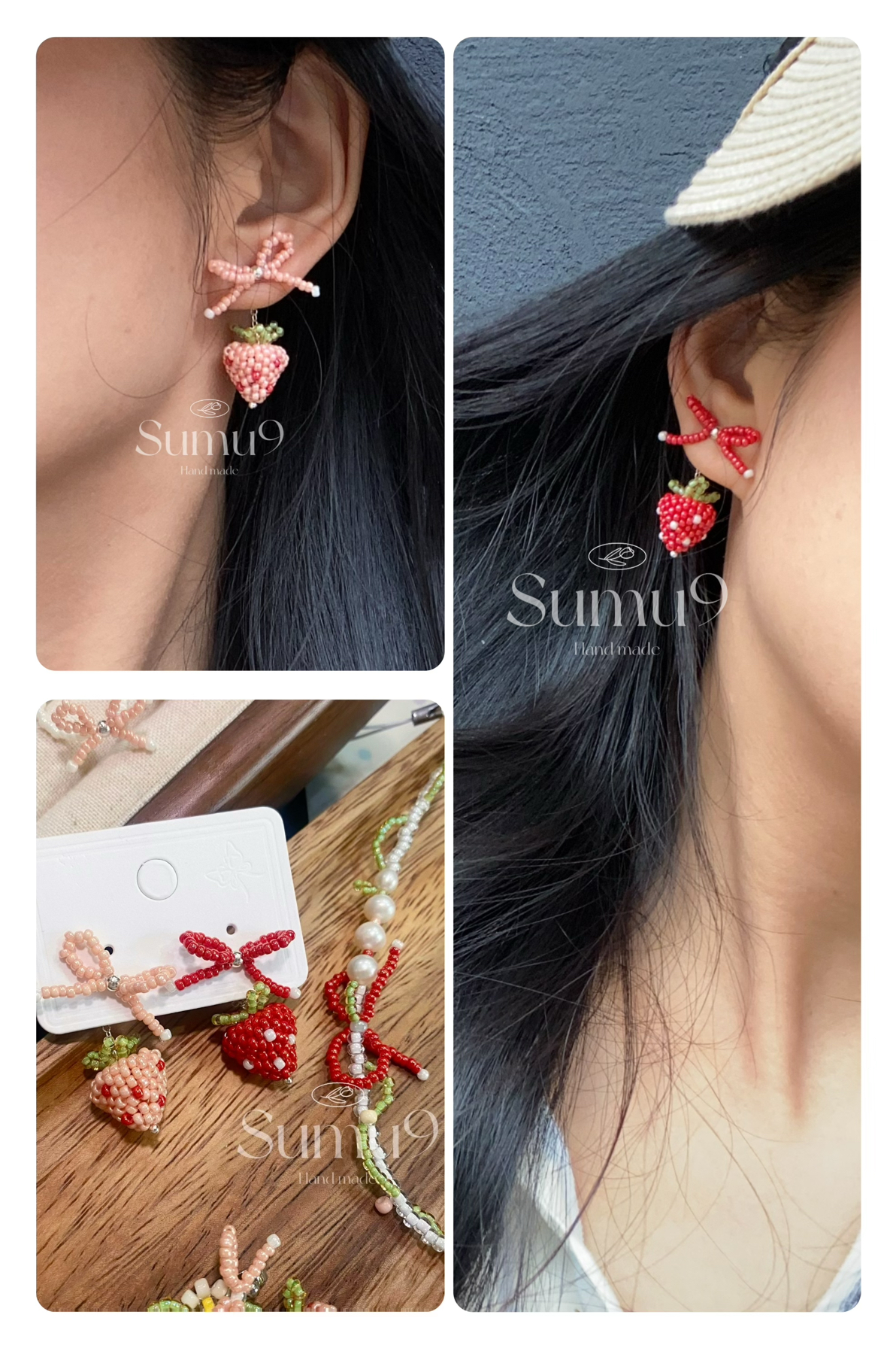 草莓淡水珍珠原创设计手工串珠新款耳环戒指手链项链发夹手机链女