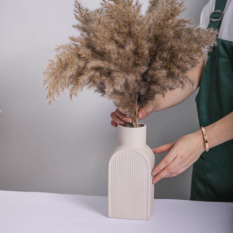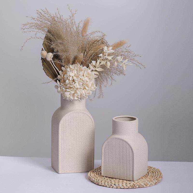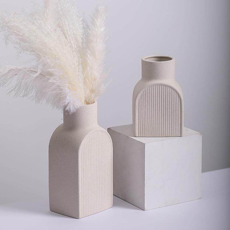 跨境北欧风陶瓷素烧花瓶创意白色带复古斑点花插极简酒店家居摆件