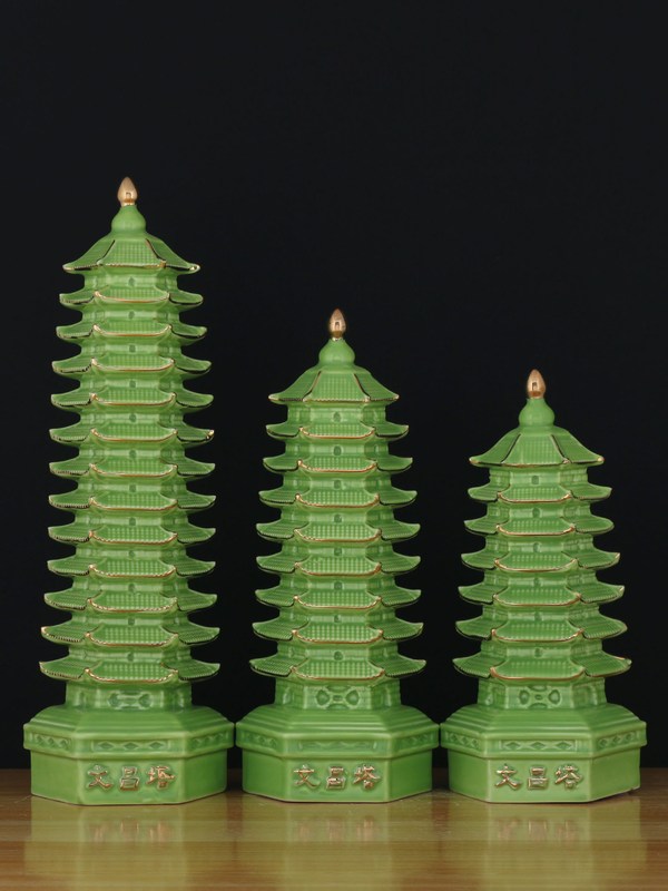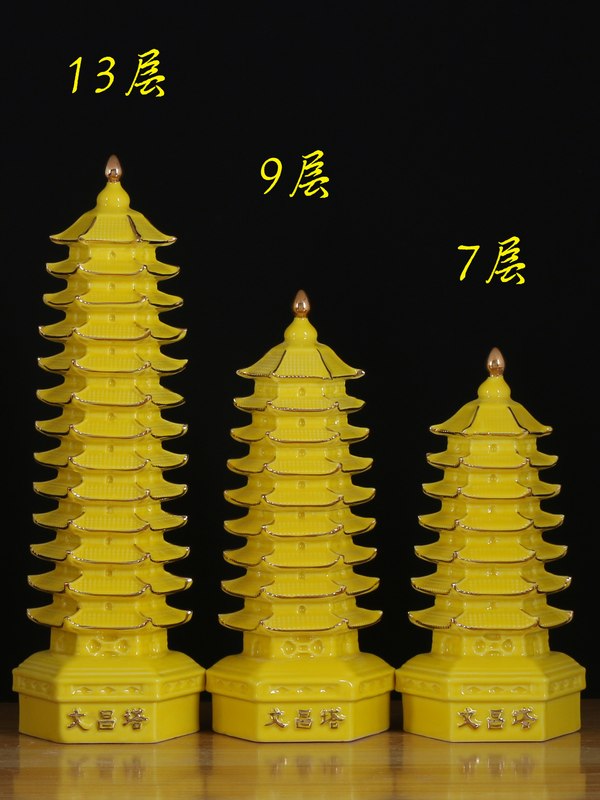 陶瓷文昌塔桌面摆件七层男红色九层办公室女孩黄色黑色绿色十三层