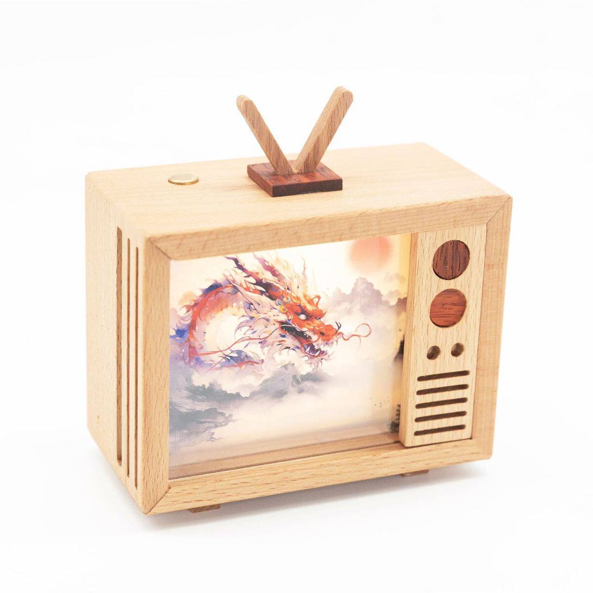 小电视夜灯灵龙木质工艺品榉木手工木工专用材料包团建创客教育