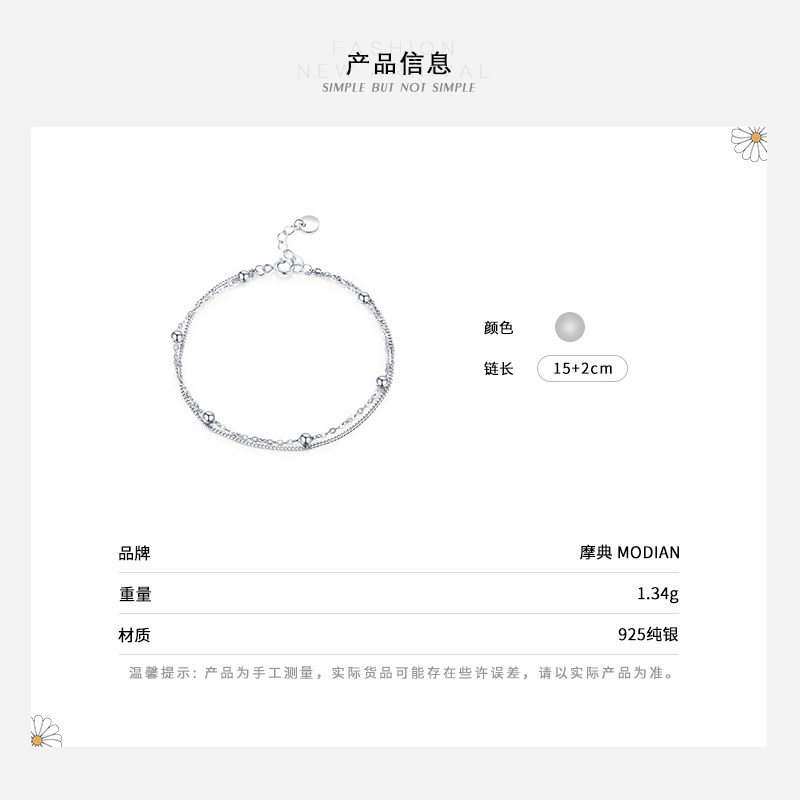 Modian双层手链女夏纯银手链ins小众设计闺蜜手链女生简约冷淡风