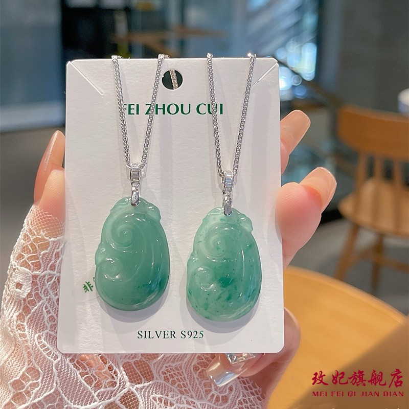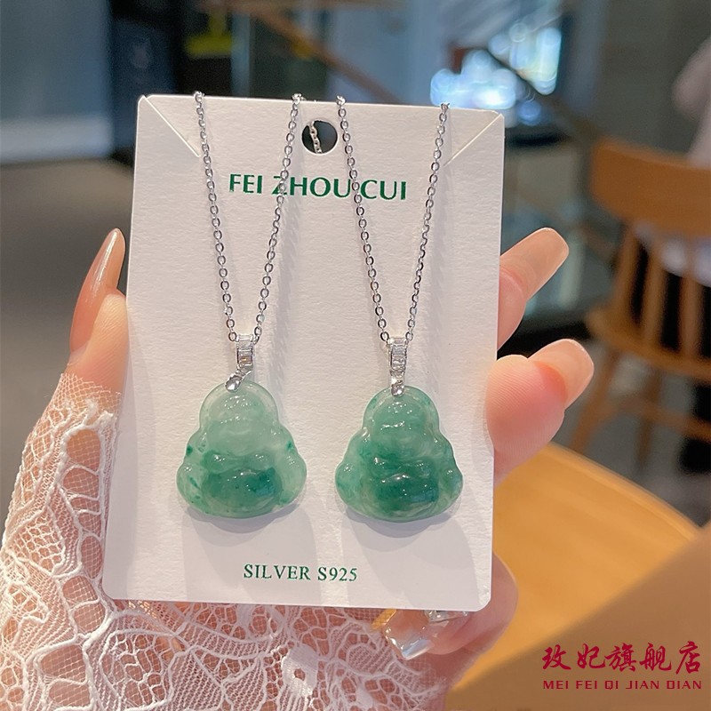 玫妃天然非洲翠独龙玉如意平安扣葫芦弥勒佛公纯银项链女时尚轻奢