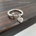 MODIAN摩典S925纯银小清新薄荷绿珐琅爱心镶钻戒指女心形吊坠指环