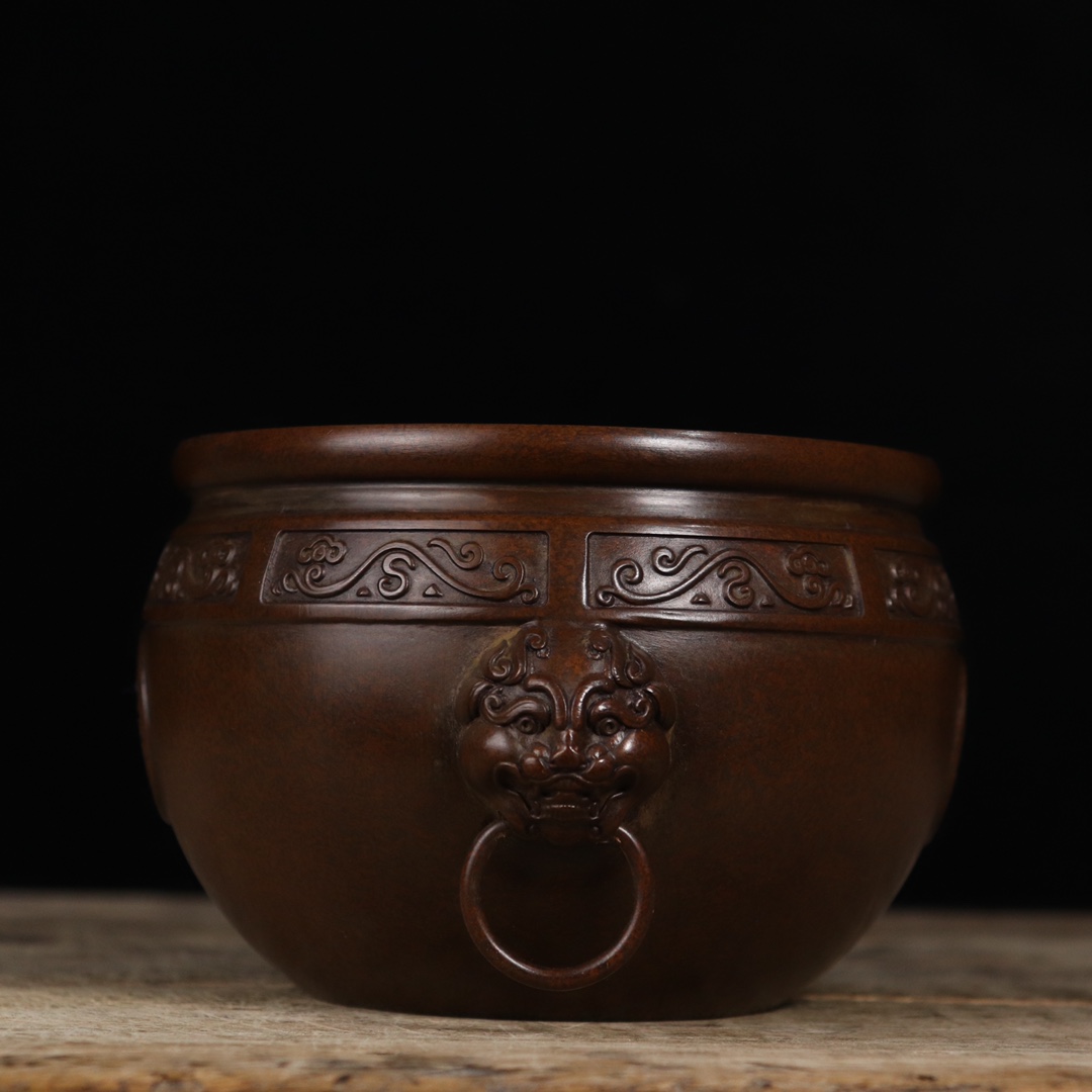铜聚宝盆紫铜故宫缸复古纯铜超大号双狮头故宫招财缸摆件