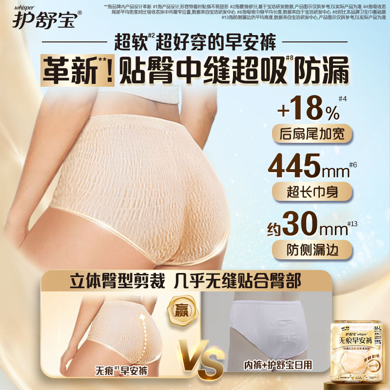 【魔术贴贴裤】护舒宝无痕早安裤日安心姨妈安睡裤型卫生巾不脱裤