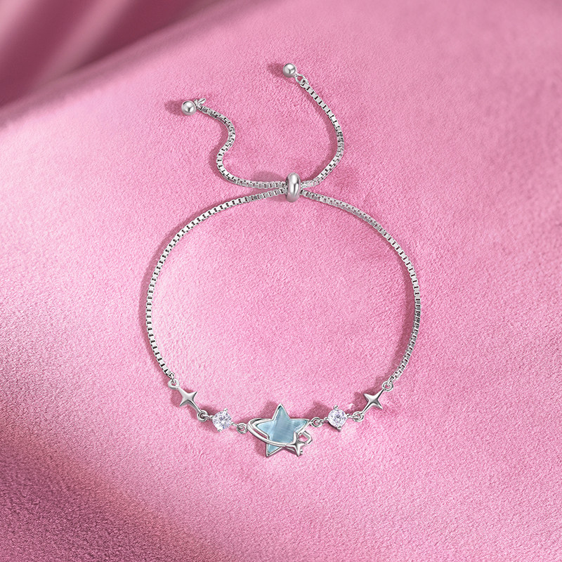 周六福蓝星银手链女S925银高级感轻奢小众圣诞礼物送女友
