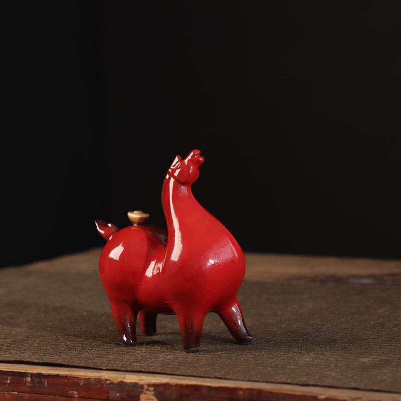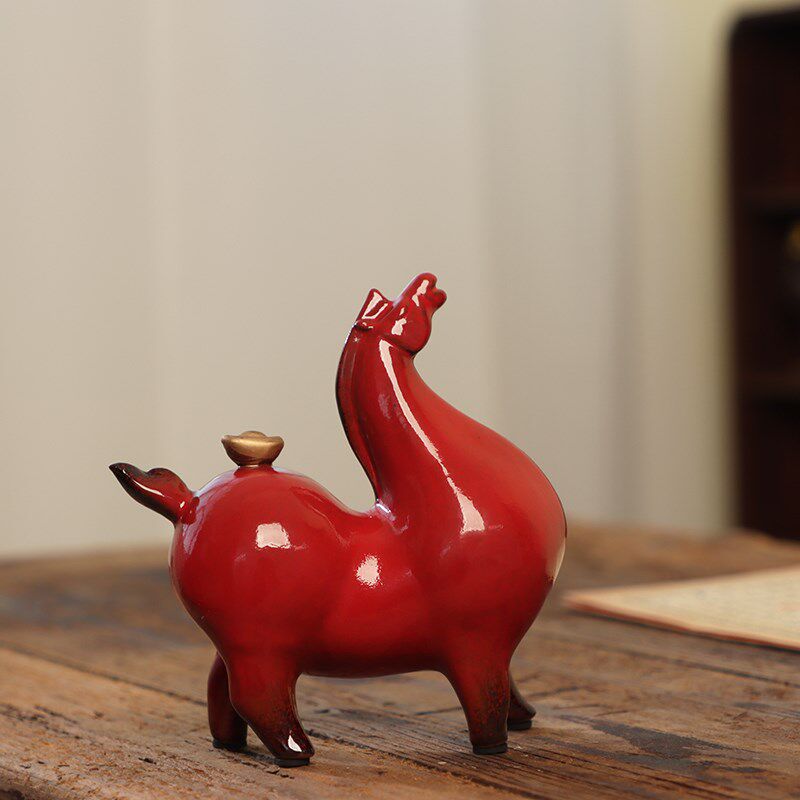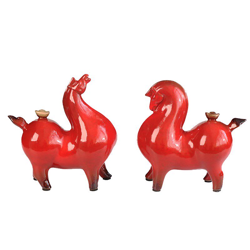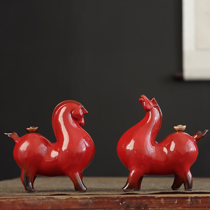 陶瓷马摆件马上有钱中式客厅办公室博古架桌面装饰红色小唐马