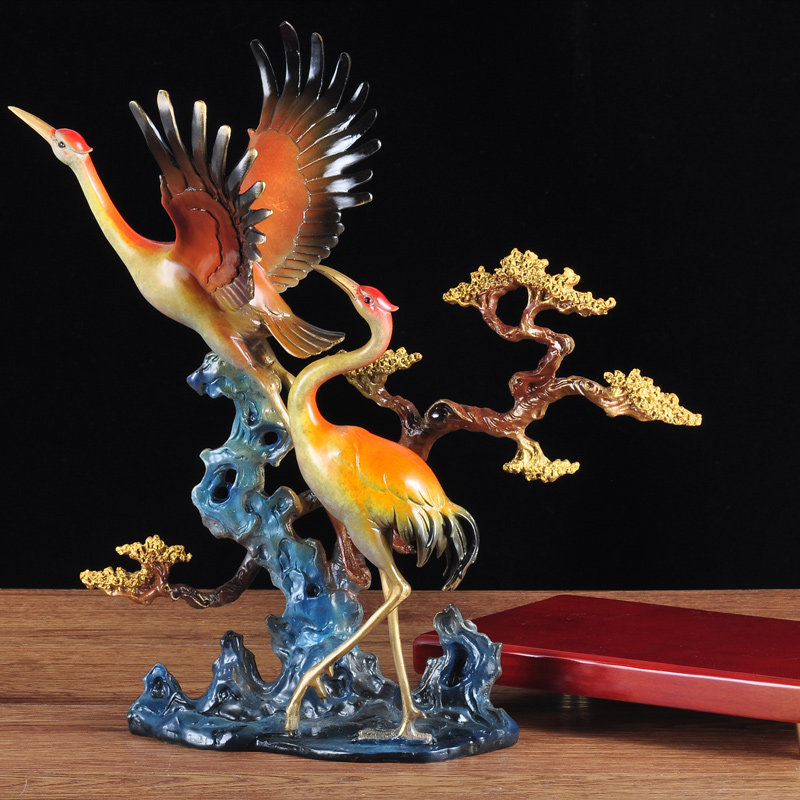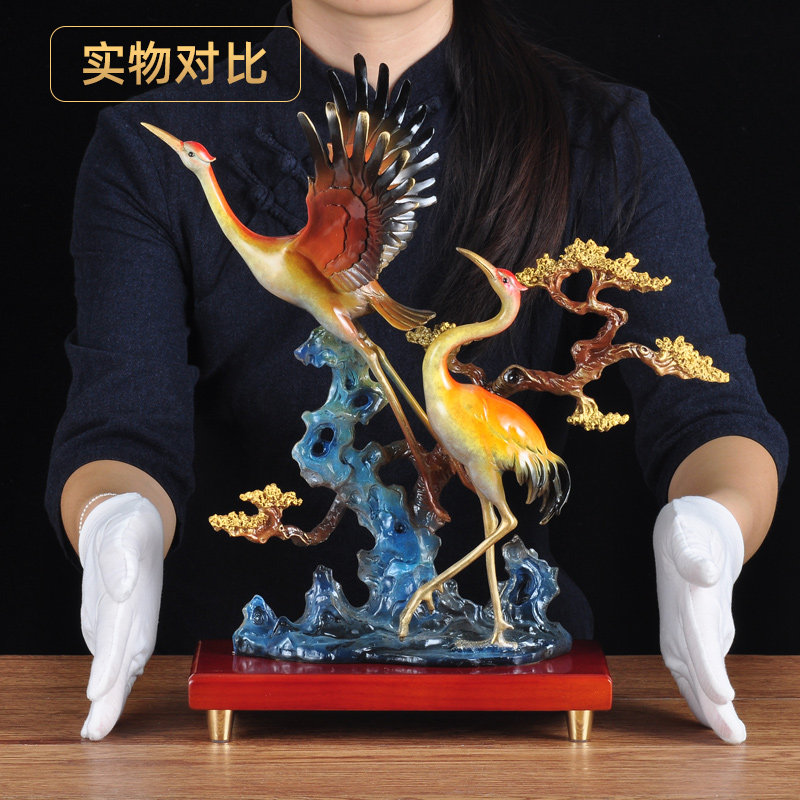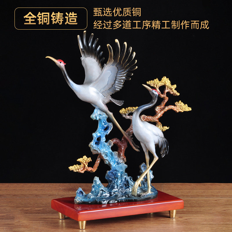 彩铜松鹤延年摆件送爷爷奶奶长辈生日贺寿祝寿礼物家居客厅装饰品