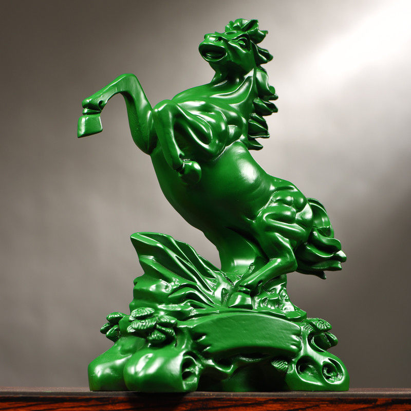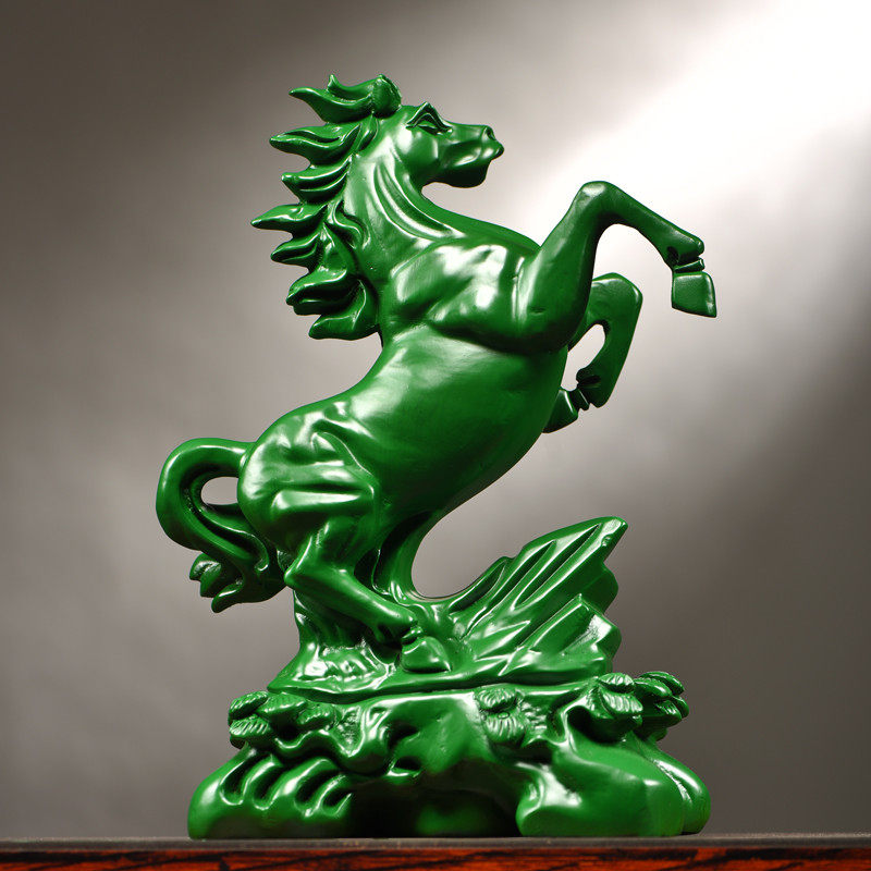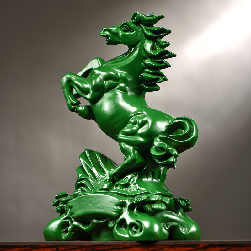 绿色木雕马摆件实木马到成功家居客厅办公桌面装饰开业送礼工艺品