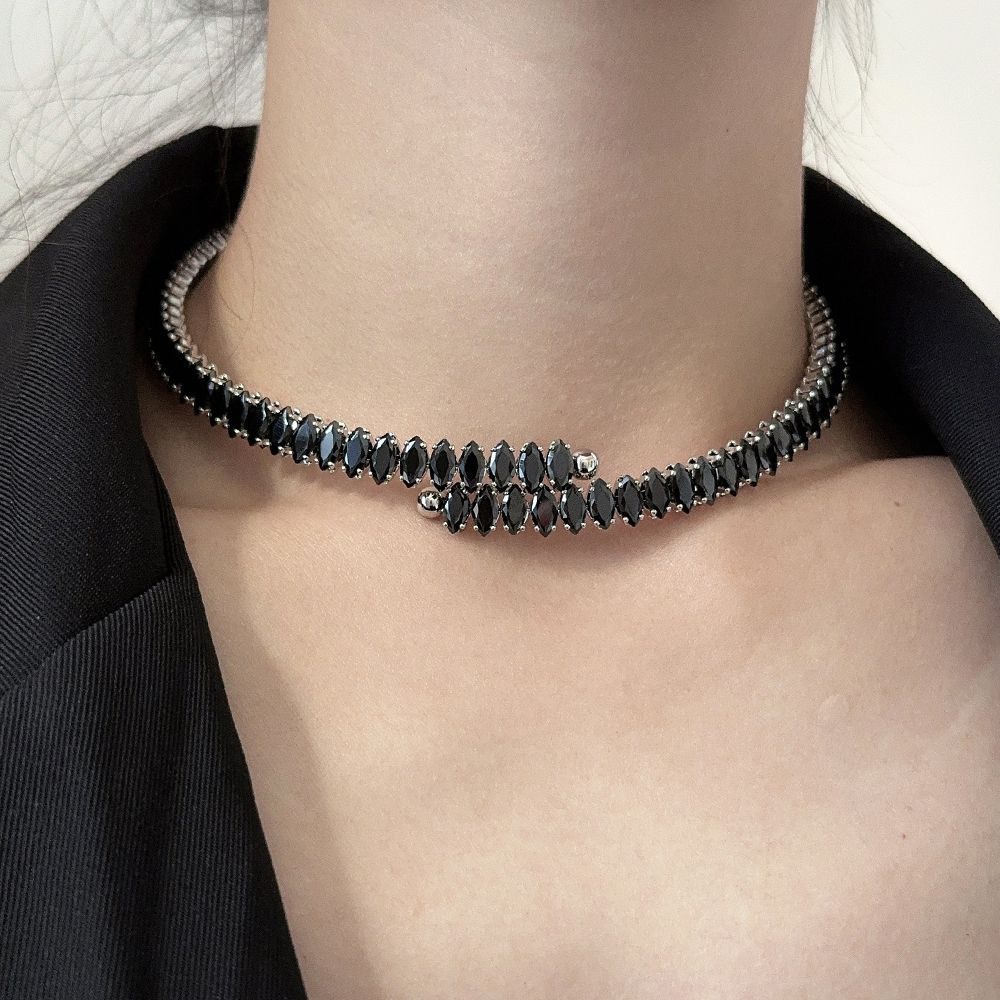 欧美复古黑色闪钻气质项圈项链女精致个性轻奢高级感锁骨链颈链潮