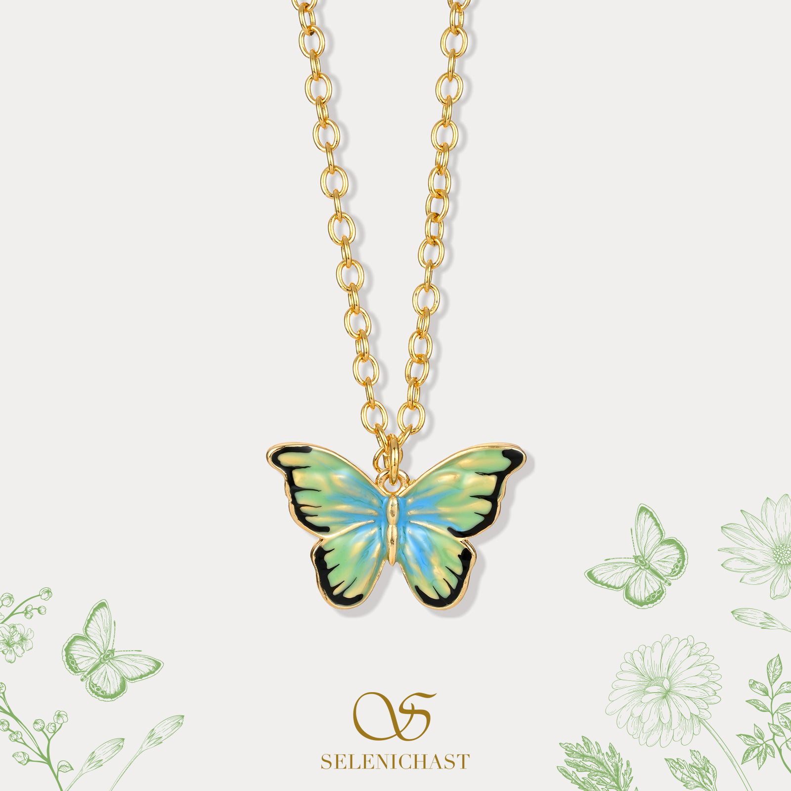 SELENICHAST绿色蝴蝶项链轻奢小众设计珐琅吊坠女友生日礼物首饰