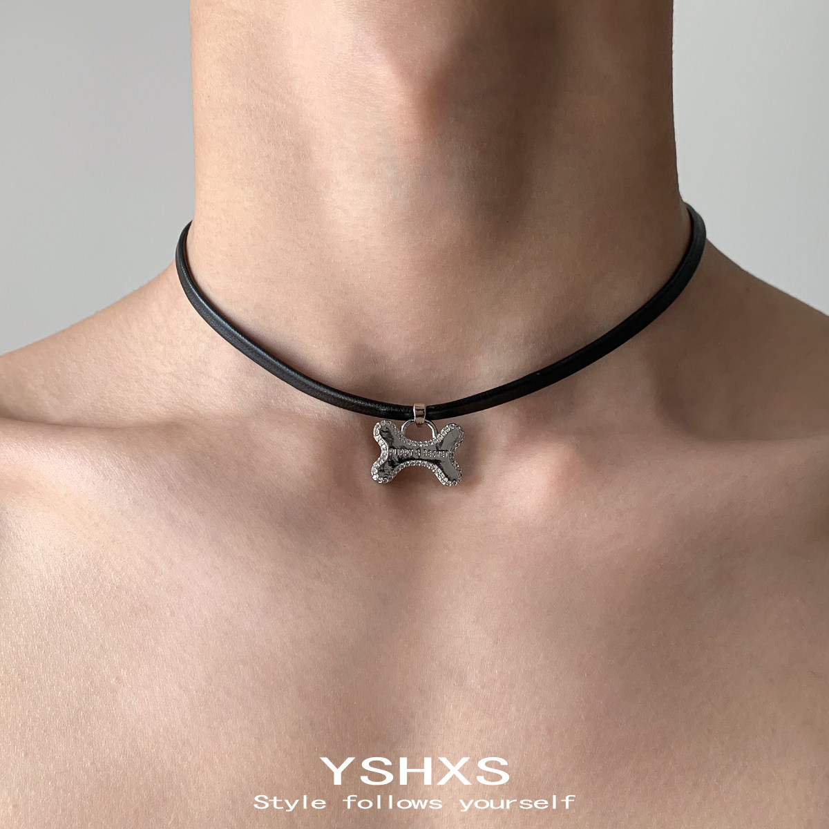 小狗骨头甜酷风choker皮绳项圈小众简约百搭项链个性高级感颈链