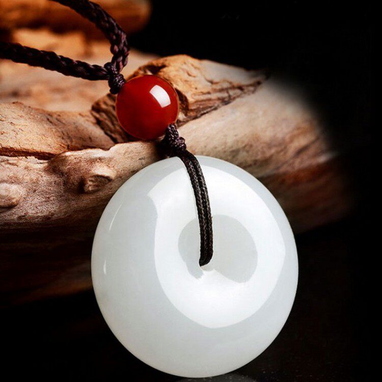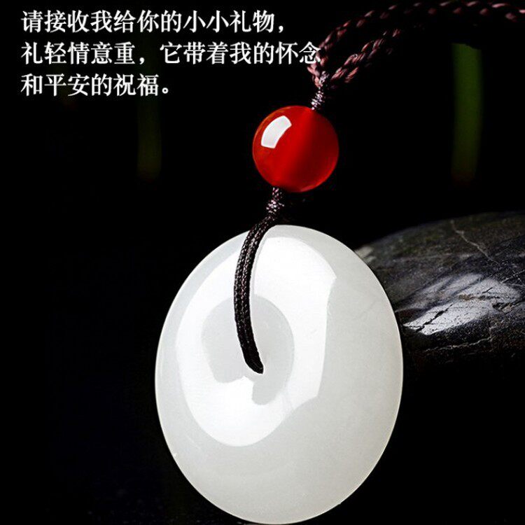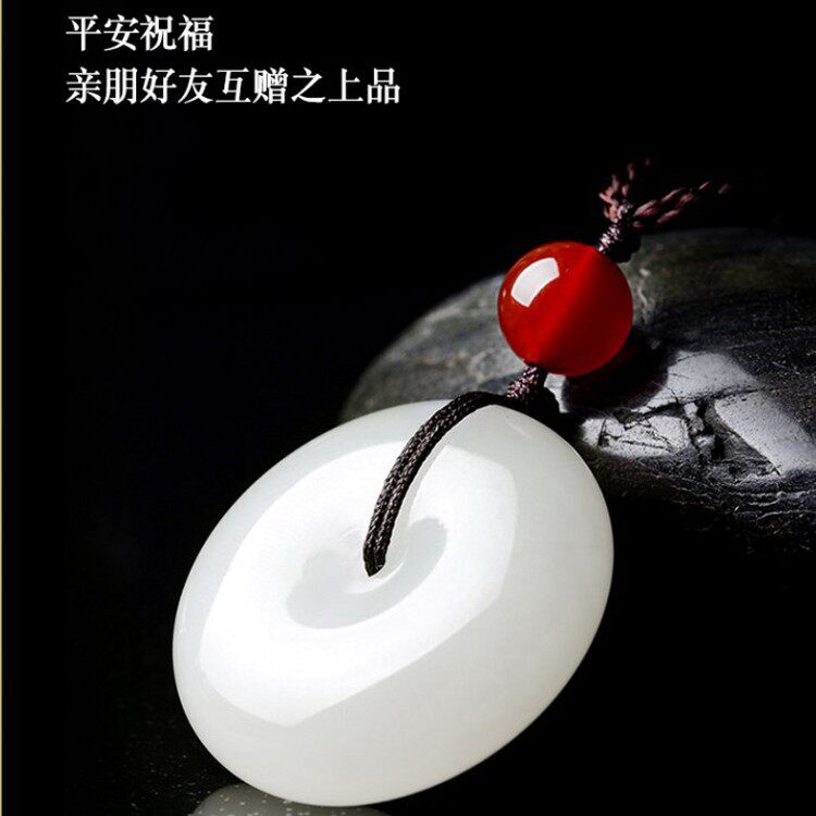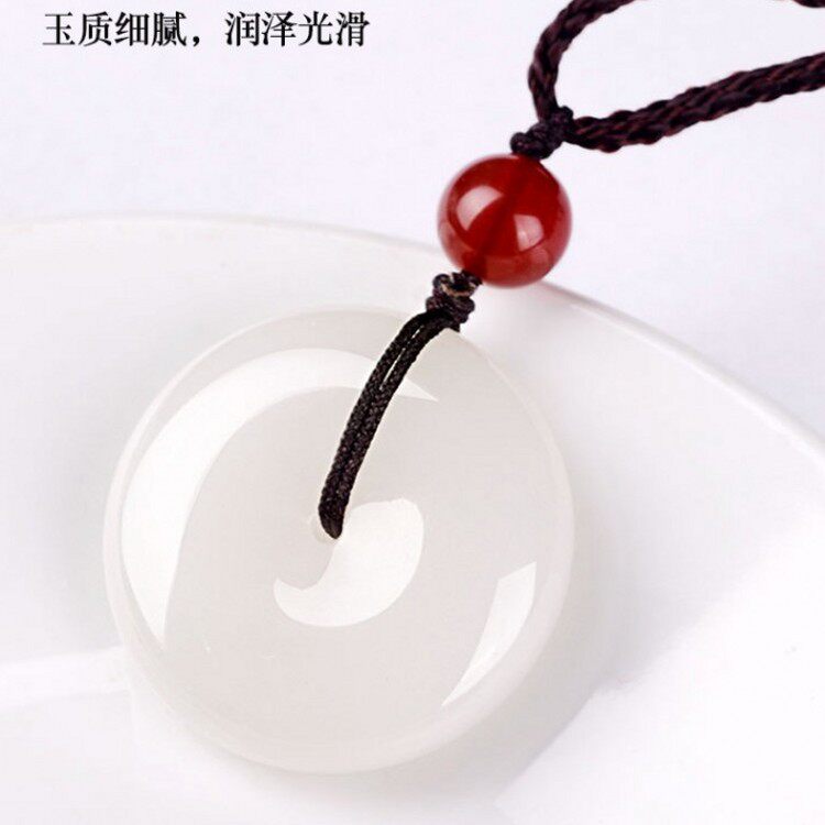 天然石英岩质白玉吊坠白色温润玉石情侣款平安扣项链女款东海水晶